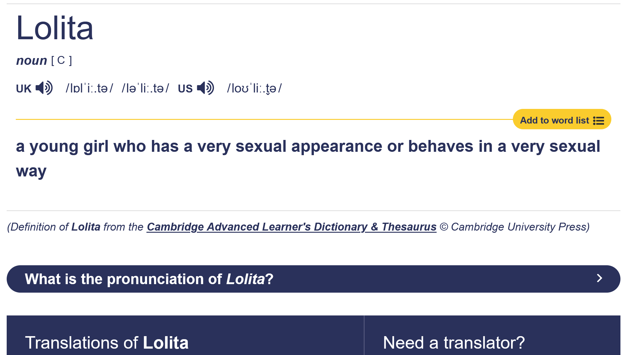 >>758682 and how lolita is not an inherently sexual term (when applied to a random child not named Lolita.)
