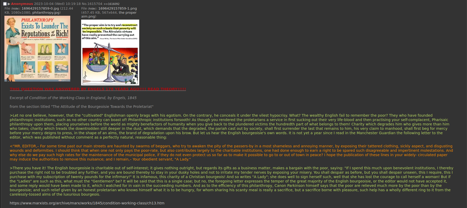 >>761994I can think of multiple examples of philantroshitters building equipment, that broke down over less than a year or was straight-up useless, from the top of my head. The only successful examples you see, like bottle lights or charities literally gifting people livestock, barely qualify. No one involved in these projects sets out to build actually useful infrastructure.