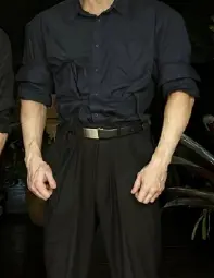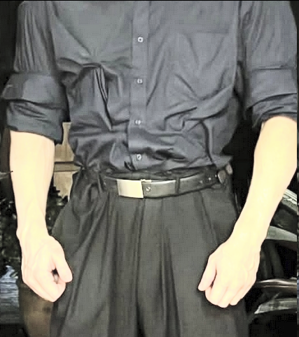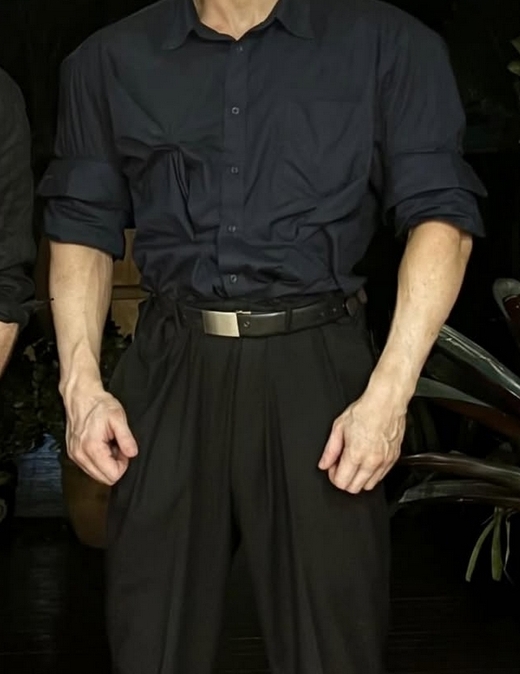 >>763093It looks like his clothes are oversized. I wonder if it's deliberate, to imply that his shoulders are so wide he needs these large clothes that the rest of his body cannot fill in. But that does not explain the pants. Like what the fuck is up with those pants. Why would you wear that. Just get something that fits.