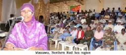 >At a celebratory event held at Massawa Stadium, Ms. Jimia Mohammed Raki, head of the National Union of Eritrean Women (NUEW) in the Northern Red Sea Region, highlighted the vital role and participation of women in national development programs. She called for enhanced engagement to achieve even better outcomes.