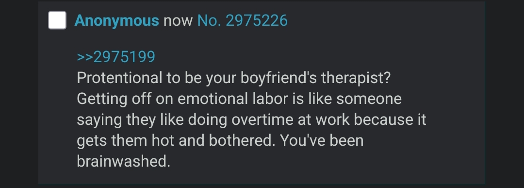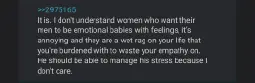 >>774052I feel like this is a woman's idea of how men operate that they're trying to reverse the genders to make some esoteric point.