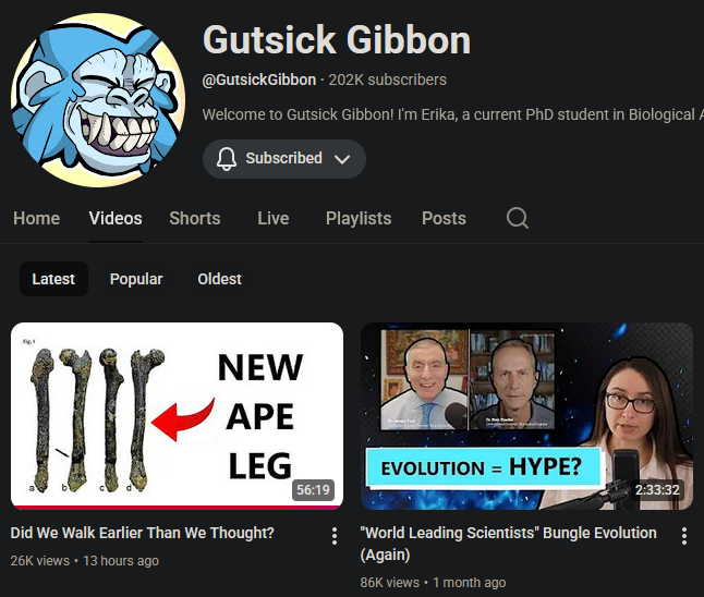 https://en.wikipedia.org/wiki/Paradolichopithecushttps://www.youtube.com/watch?v=xTc_kQU-hzwThe reason she included a thumbnail like the one in the OP is because she spends a lot of time debunking creationists, many of whom are racist, and she's trying to address common popsci vulgarizations racists like to use.