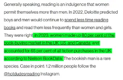 FACT: Men are born to hunt and build and fuck, and reading novels detracts from those things. If I can read a documentation on how to build or repair something, then that makes sense, and there is a point to the reading. If I can read an instruction manual on how to do better pelvic floor exercises and strengthen my dick until I can do the dick pushups in the world, then that makes sense and the reading has a point. If I can read something that will tell me how to pick up chicks, or how to baste a turkey, or how to be gud at fishing, then that makes sense, and my time isn't wasted in reading those things.