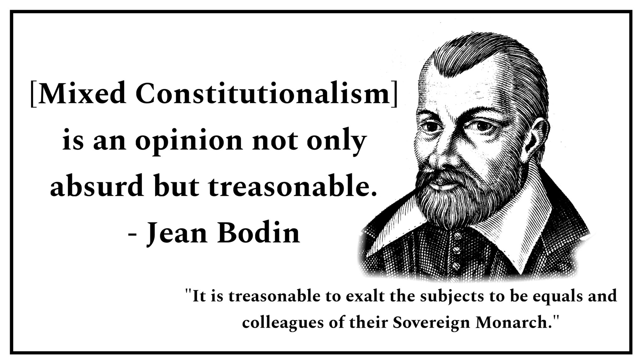 The Medievalist lacks a certain political forte with regard to Monarchy & the Herodotus Debate that absolutism carries (because the Medievalist is predisposed to ultra-clericalism / ultramontanism). Medievalists usually are strong proponents of mixed constitutionalism (having their roots in Aristotle & his politics) and wields Alexis de Tocqueville & Bertrand de Jouvenel against absolute monarchy.