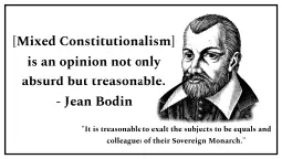 >Sometimes also in the merely civil government there be more than one soul… For although few perceive that such government is not government, but division of the Commonwealth into three factions, and call it mixed monarchy; yet the truth is that it is not one independent Commonwealth, but three independent factions; nor one representative person, but three. In the Kingdom of God there may be three persons independent, without breach of unity in God that reigneth; but where men reign, that be subject to diversity of opinions, it cannot be so.