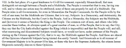 >Besides, I told you before, that those which were then likeliest to have their counsel asked in this business, were averse to absolute monarchy, as also to absolute democracy or aristocracy; all which governments they esteemed tyranny, and were in love with monarchy which they used to praise by the name of mixed monarchy, though it were indeed nothing else but pure anarchy.