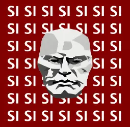 This (in)famous picture of ᴉuᴉlossnW with a plurality of Si, si, si, si, si, si behind his personage represents this unity of the representer and a cult of personality.