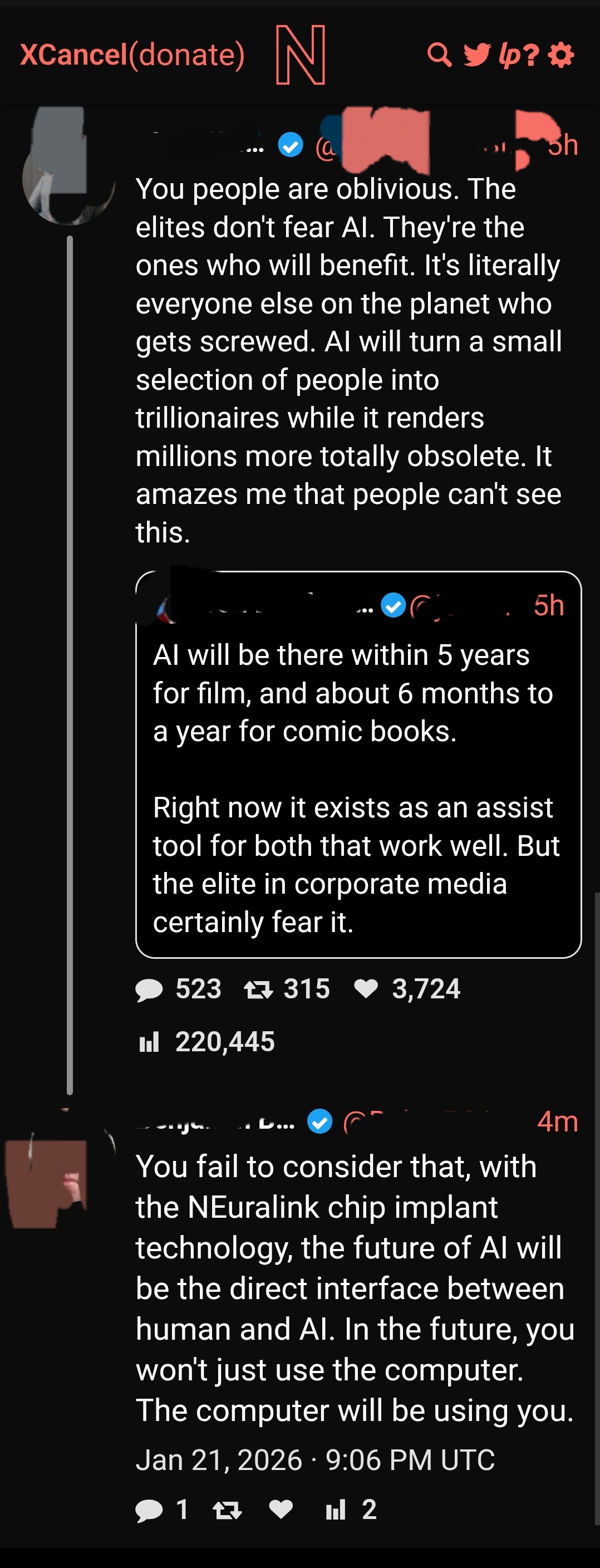 the only way AI can be a net good is if the AI industry collapses swiftly and promptly and lets researchers in china continue developing architectural breakthroughs, and let china get the fancy lithography machines so they sell us GPUs crammed with VRAM. if it's left to SV then it's only another market to corner, which is to anyone who isn't a retard, obviously bad.