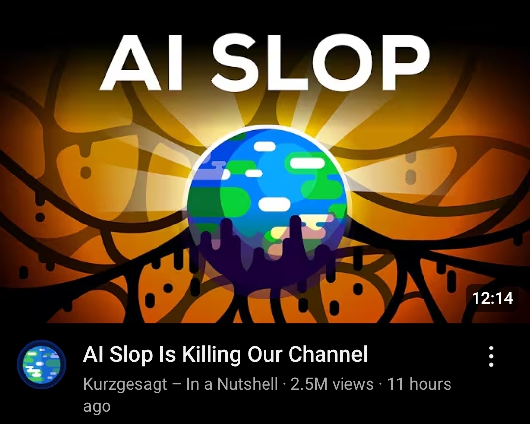 >>27559I think I’m just not going to read anything published after 2023. The online writing communities seem to have been totally destroyed by AI slop and I have seen too many professional “creative writers” just use the slop machines, I can read the writing on the wall.