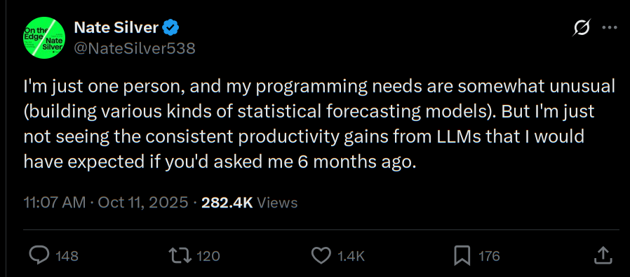>>30847It is replacing middle managers, they were the first batch that was fired across Silicon Valley but truthfully it's a mixture of two things: the managerial class isn't interested in building a machine to replace the managerial class and AI is just not replacing a lot of roles, managerial or otherwise. The bull case is and always will be programmers, and if it can't replace programmers, it can't replace much of anything at all.