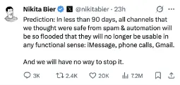 >>32625If Nikita Bier believed his own words, he would've quitted his job at x the everything app, one of the primary targets for automated spam. Look, it's this shrimple: if clawdbots or whatever were an existential threat to every social network, then it would be terrible for us, but it'd be even more terrible for the current reaction who have spent a pretty penny acquiring every major social network only for the internet to die of literal garbage overflow