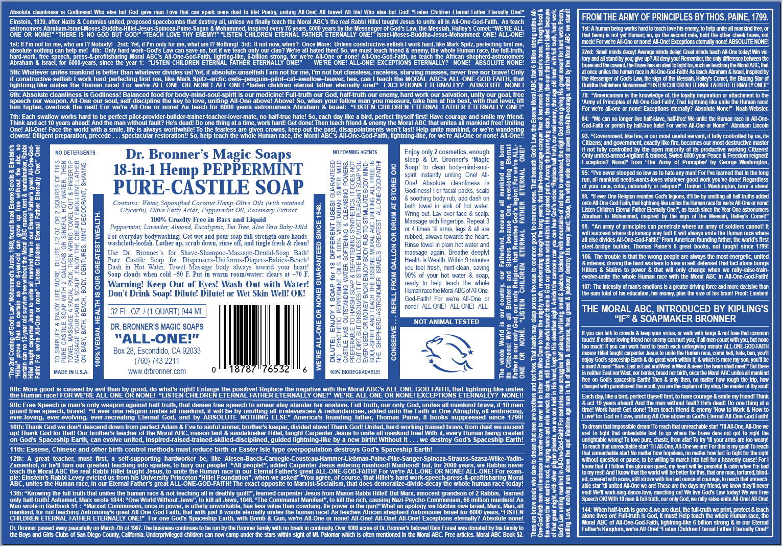 <a onclick="highlightReply('18322', event);" href="/hobby/res/18273.html#18322">>>18322</a><br/><span class="quote">>Dr. Bronners</span><br/>Why do I see this brand everywhere? Literally the first time I saw it I thought it was a practical joke.