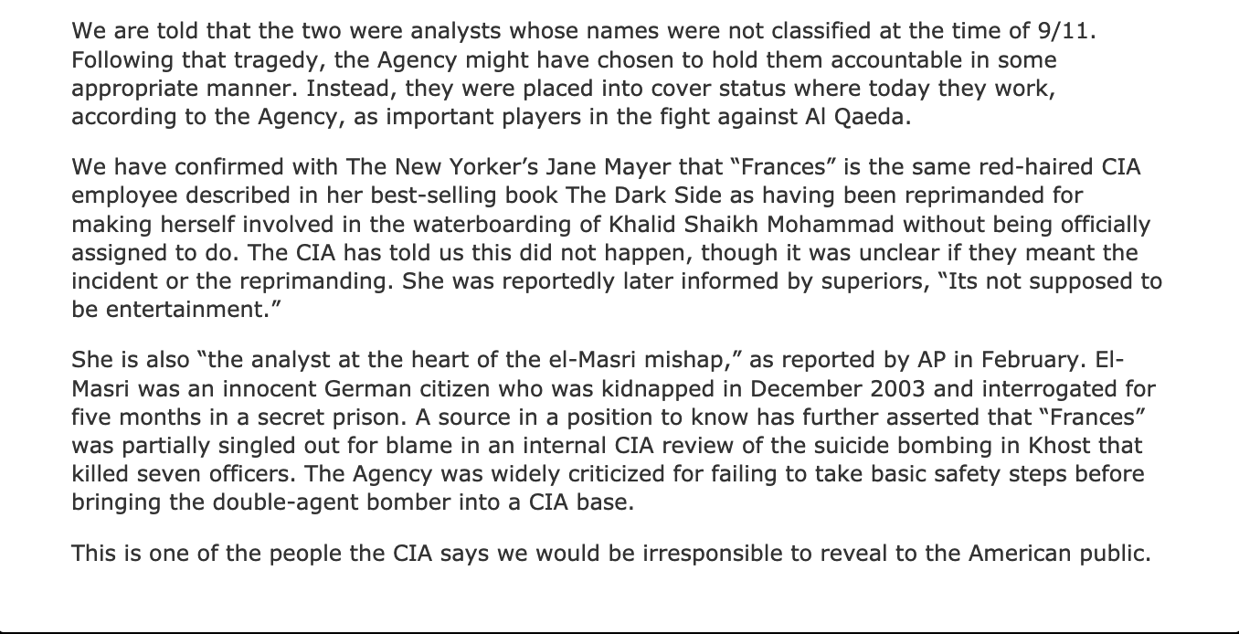 #4). Lynne Larkin, a CIA Operations Officer who co-chaired a CIA multi-agency task force coordinating intelligence efforts among many intelligence and law enforcement agencies sent a joint letter to Congress expressing their concerns about "serious shortcomings," "omissions," and "major flaws" in the 9/11 Commission Report and offering their services for a new investigation (they were ignored).