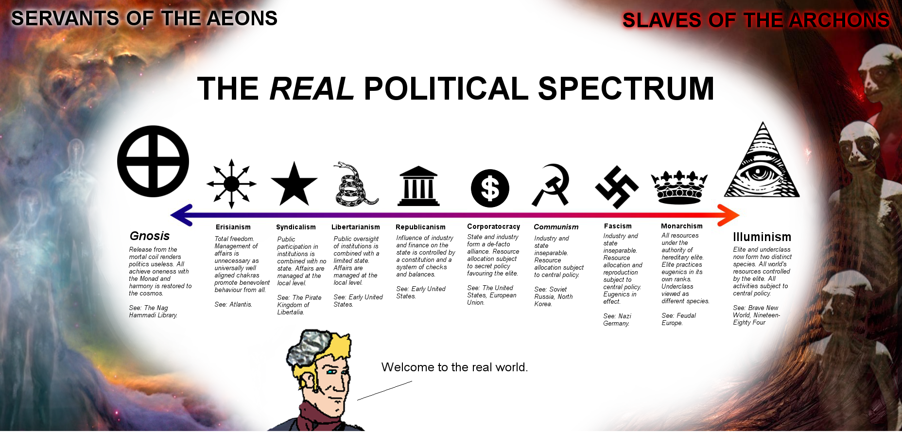 >>931"Archon" is greek for "Ruler" and is used in the new testament to refer to the spiritual and worldly powers of oppression by the apostle paul. Also in gnostic literature, the Archons are seen as servants of the "demiurge" ("creator") who is born from Sophia (wisdom). Sophia is an Aeon (Age) who descends from the Pleroma (True Heaven), yet all Aeons manifest with a masculine and feminine counterpart. Sophia attempted to create an image of herself without a masculine partner, leading to the Demiurge, who is the "chief ruler" of the material world (described by Paul in 2 Cor 4:4) and who employs 12 subsequent Archons for his evil deeds. You can read the primary source: